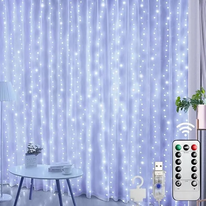 Com 300 luzes LED de branco frio, essa cortina cria uma atmosfera acolhedora e elegante — ideal pra janelas, varandas, paredes ou eventos como Natal, casamentos, festas e churrascos.